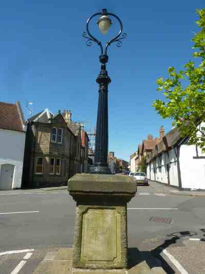 Route Point 1 – Castle Square is on the site of a medieval marketplace. On the north side stands the White Swan with the inn sign clasping the corner of the building and a large thatched cottage – divided into seven cottages in 1824, but now restored to one. On the other side, there was once a substantial castle, but it fell into disrepair in the 17th century, and enterprising local builders were not slow to take advantage of such a good supply of stone. All that remains above ground is a wall made up of infillings of the castle wall on private land at Castle Farm.