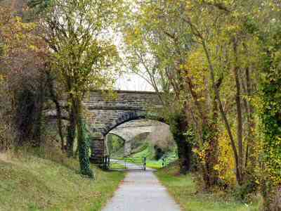 Walk down the lane for 25 yards, before turning left along an access path. At the end, turn right along Cloud Trail, for the use of cyclists and walkers. Follow the trail for about one and a half miles, and then at a sign for the Bulls Head, turn right up an access track onto a bridge.