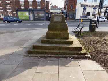 In 1981, the cross was moved back to its present location in Friar Gate. It is said that it was once a complete cross, but that it lost its head long before the battle of Agincourt. During outbreaks of the plague, all public gatherings were discontinued. Foodstuffs were left near the cross by local farmers, who would vigorously chew tobacco while depositing their produce, as this was considered to act as a preventative action against the disease. The hollow in the top of the stone was filled with vinegar, which acted as a form of disinfectant for the coins that were immersed by the starving citizens of Derby, in payment for food.
